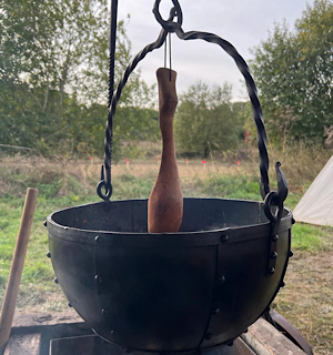 Mittelalterlicher Lagertopf, vernietet mit ca. 9 Liter Fassungsvermögen für Eintöpfe, Suppen oder auch einfach nur heißes Wasser für den Kaffee oder Met.