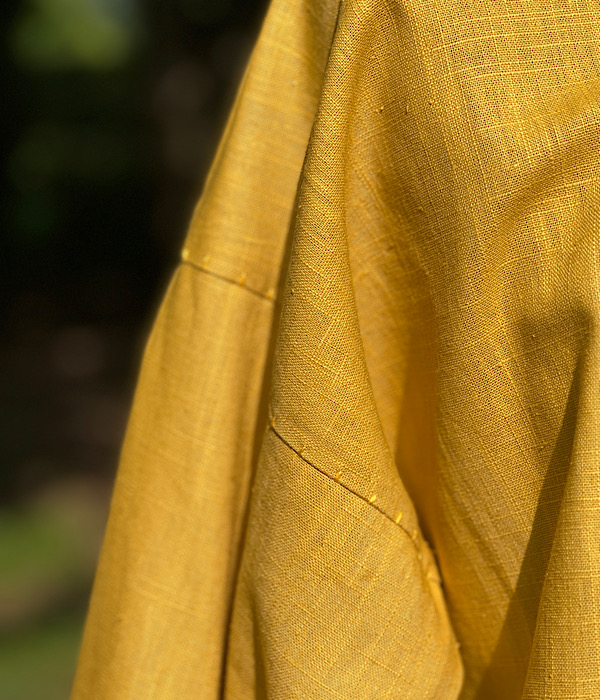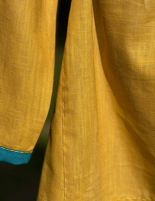 Wunderschöne Tunika aus reinem Leinen in ockergelb- türkis. Hand-/Ziernähte aus gelben Leinengarn.