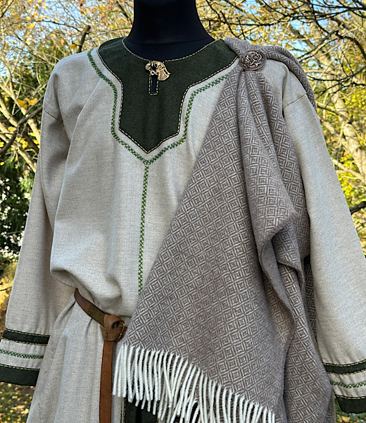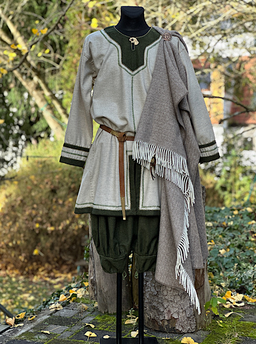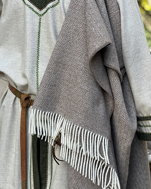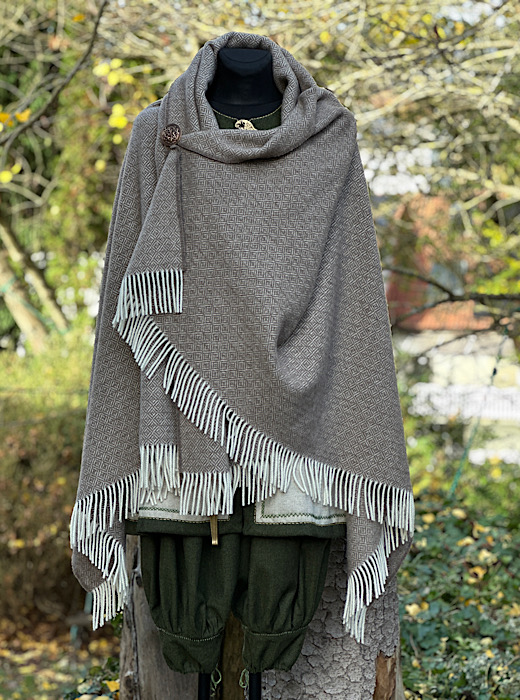 Der Mantel ist eine RECHTECKIGE Decke, die im Frühmittelalter tagsüber als Mantel und Nachts als Schlafdecke genutzt wurde.