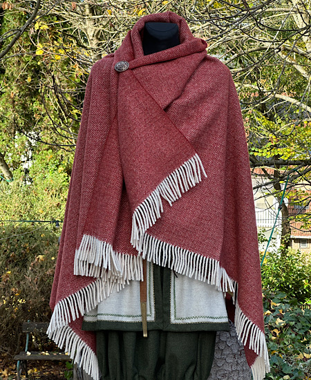 Hier könnt Ihr einen wunderschönen Rechteckmantel in natur-rostrot aus reiner, kuscheliger Schurwolle/ Diamantköper erwerben. Dieser tolle Mantel ist nicht nur für die Mittelaltermärkte geeignet sondern auch im ganz normalen Alltag oder in der kalten Jahreszeit zum einkuscheln auf dem Sofa. Mit einer Größe von ca 140 cm x 190 kann der Mantel auch nachts wunderbar als Lagerdecke genutzt werden.
