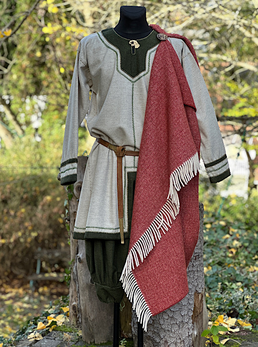 Der Mantel ist eine RECHTECKIGE Decke, die im Frühmittelalter tagsüber als Mantel und Nachts als Schlafdecke genutzt wurde.