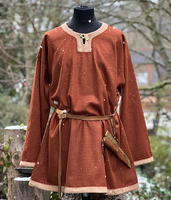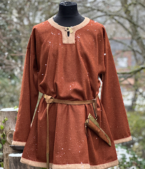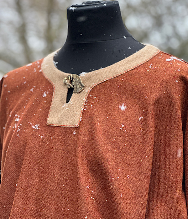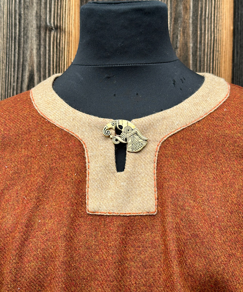 Behübscht ist die Tunika mit einer Rabenfibel. Diese ist nicht im Preis inbegriffen, kann hier aber im Shop käuflich erworben werden.