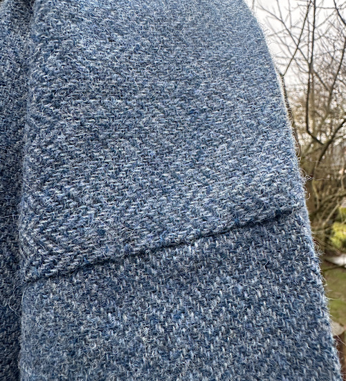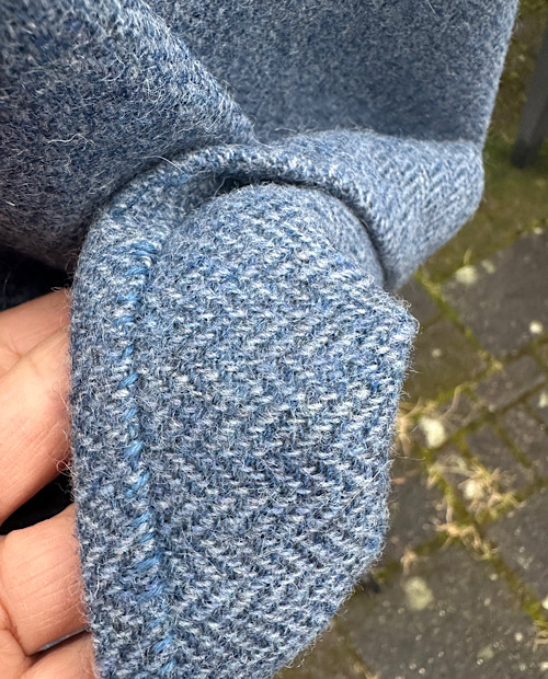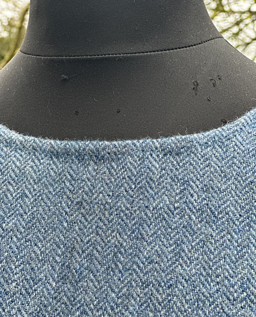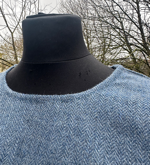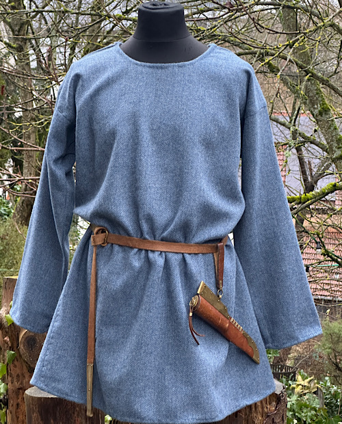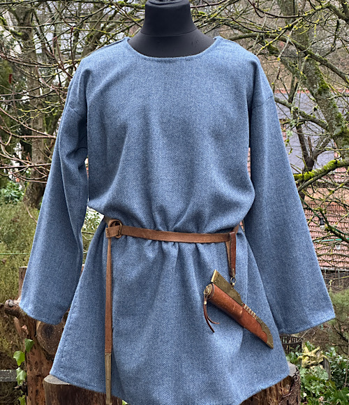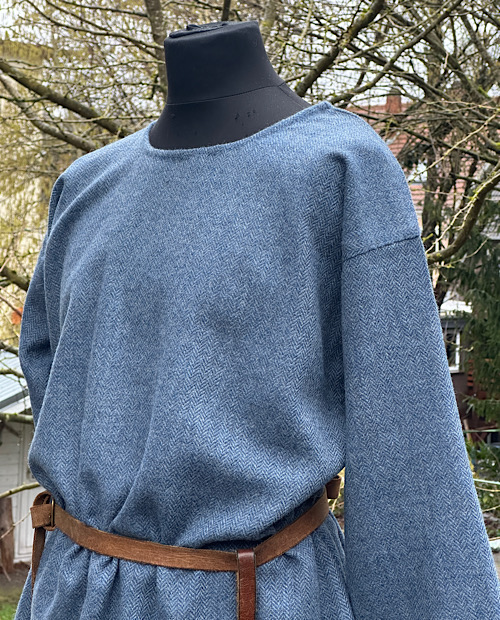Wunderschöne Tunika aus reiner, blauer Schurwolle in Fischgratbindung. Die sichtbaren Handnähte habe ich alle von Hand mit pflanzengefärbten Garn gefertigt.
